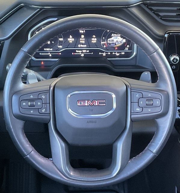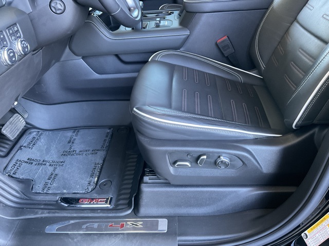 1-Owner Trade-in, Sierra 1500 AT4X, 4D Crew Cab, 4WD, 16-Way Power Driver Seat Adjuster w/Lumbar, 16-Way Power Passenger Seat Adjuster w/Lumbar, Apple CarPlay/Android Auto, Bed View Camera, Bose Premium Series w/12-Speaker System, Driver Memory, Driver-Selectable Full-Locking Front Differential, Driver-Selectable Full-Locking Rear Differential, Forward Collision Alert, Front dual zone A/C, Full Grain Leather Seat Trim, GMC MultiPro Tailgate Step Lights (LPO), Heads-Up Display, Heated Driver & Front Outboard Passenger Seating, Heated rear seats, Heated steering wheel, Hitch Guidance, Hitch Guidance w/Hitch View, Integrated Trailer Brake Controller, Memory seat, Multicolor 15" Diagonal Head-Up Display, MultiPro Audio System by Kicker (LPO), Navigation System, Off-Road Suspension, Power driver seat, Power moonroof, Power Rear Windows w/Express Down, Power Sliding Rear Window w/Rear Defogger, Remote keyless entry, Split folding rear seat, Spray-On Pickup Bed Liner w/AT4X Logo, Steering Wheel Audio Controls, Steering wheel mounted audio controls, Trailer Camera Provisions, Trailering Package, Ultrasonic Front & Rear Park Assist, Ventilated Driver & Front Passenger Seats, Wheels: 18" x 8.5" Gloss Black Painted Aluminum, Wireless Charging, Wireless Phone Projection.