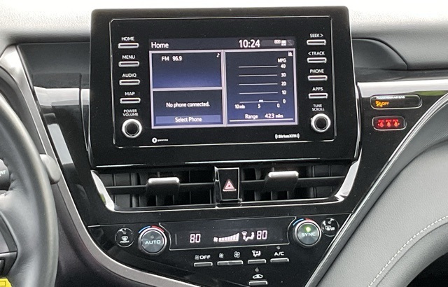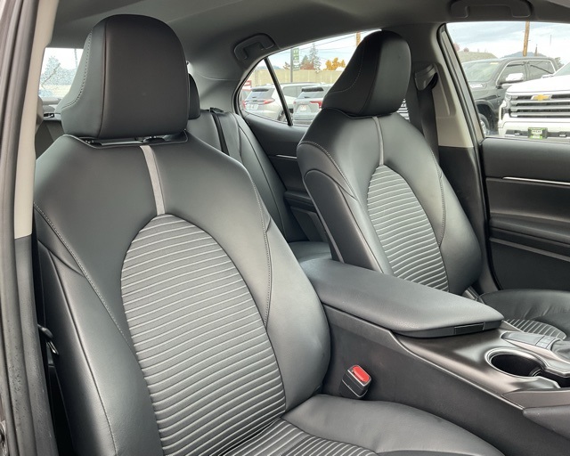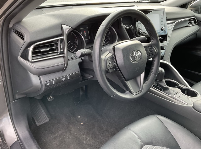 Camry SE, 18" x 8J Alloy Wheels, ABS brakes, Active Cruise Control, Apple CarPlay/Android Auto, Delay-off headlights, Electronic Stability Control, Front dual zone A/C, Heated door mirrors, Illuminated entry, Low tire pressure warning, Outside temperature display, Power door mirrors, Power driver seat, Power windows, Remote keyless entry, Split folding rear seat, Sport SofTex Seat Trim w/Fabric Inserts, Steering wheel mounted audio controls, Traction control.