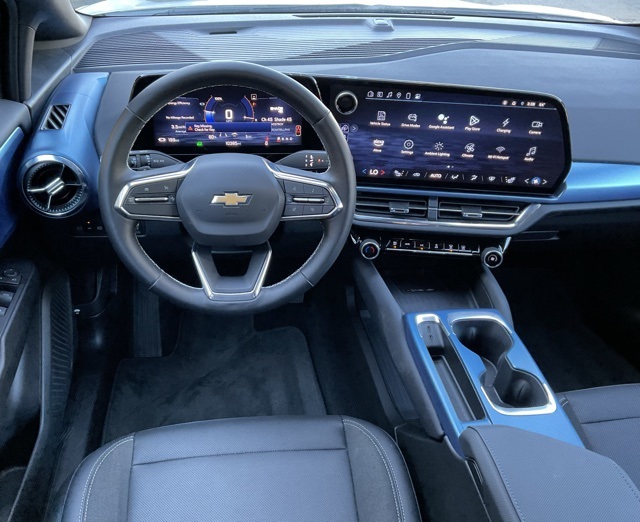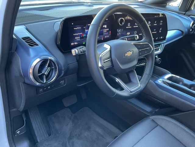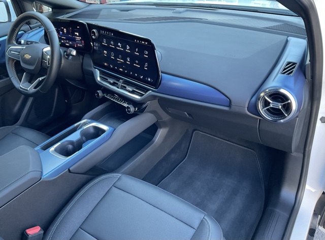 Equinox EV LT, 19" Wheels, 6-Way Manual Front Passenger Seat Adjuster, 8-Way Power Driver Seat Adjuster, Active Safety Package 2, Ambient Multi-Color Interior Lighting, Auto High-beam Headlights, AutoSense Hands-Free Power Programmable Liftgate, Bright Roof Rails, Center Lit Bar Headlamps, Comfort Package, Convenience Package, Driver & Front Passenger Visors, Enhanced Traffic Sign Recognition, Evotex Seat Trim, HD Surround Vision, Heated Automatic Steering Wheel, Heated Driver & Fr Passenger Seats Cushion & Seatback, Heated Power-Adjustable Outside Mirrors, Hitch Guidance, Hitch View, Inside Rear-View Auto-Dimming Mirror, Navigation system: Google built-in compatibility (select service plan required, terms and limitations apply), Power door mirrors, Power Driver Lumbar Control, Power Windows, Rear Pedestrian Alert, Rear seat center armrest, Remote keyless entry, Round Bottom Wrapped Steering Wheel, Split folding rear seat, Steering wheel mounted audio controls, Wireless Phone Charging.